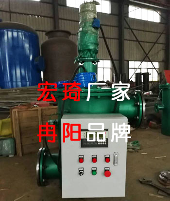 7、过滤器采用二级过滤、排污机构。过滤器的内置栏污栅能将较大的污物如树枝、泡沫、水草栏住,并由上端排污阀排出。其余的小颗粒物由下端排污阀反冲排出。此外,可根据用户的要求增设双刃强力剪刀,将较大的污物剪碎,由上端排污阀排出。